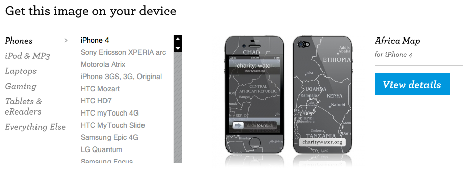 Another fun, practical way you can help: buy me this iPhone 4 Africa gelskin from charitywater store! Check out their other products too!